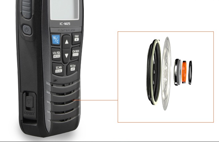 拿著IC-A25N首先感覺到它的厚重和結實耐用。主機前面板2.3英寸大顯示屏和導航式按鍵相呼應,加上2350mAh的扁平電池設計使得整機線條流暢,布局合理,厚薄適中很有點大器晚成之感。 右側底部的11VDV電源插口既可以配合CP-20選件實現車載DC11V實現外部電源供電工作又可通過BP-167S適配器通過主機直接為電池充電,為電池充電實現了雙備份。
