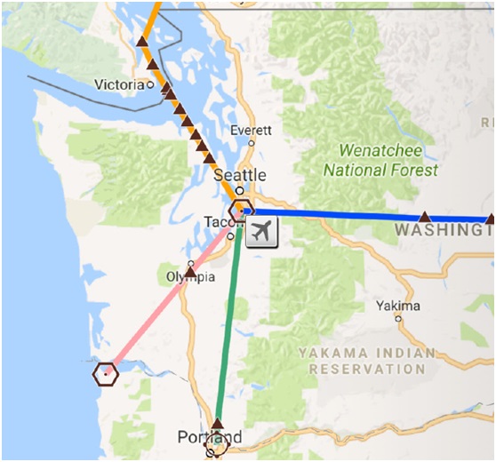 如下例圖,當手機安裝RS-AERO1A(安卓設備)或RS-AERO1I(蘋果設備)應用軟件后,配合GOOGLE地圖可實現在地圖上通過點擊目標點來定制飛行計劃并導出到IC-A25N中實現可視化定制目的地(國內因地圖限制暫無法使用該功能)等方便功能.