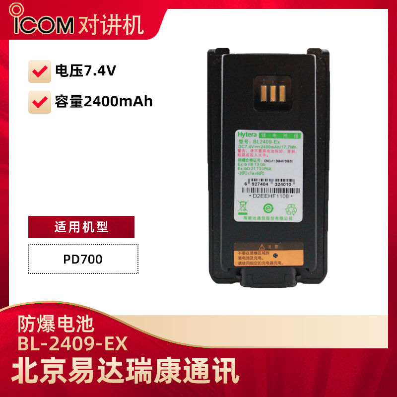 大容量 3000 mAh 防爆鋰電池 VX-829防爆對講機