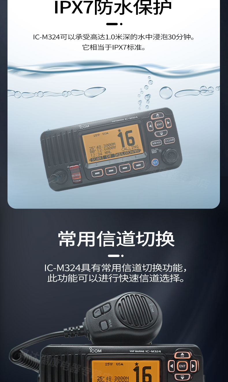 IC-M324 可以承受高達1.0米深的水中浸泡30分鐘。它相當于IPX7標準防護.