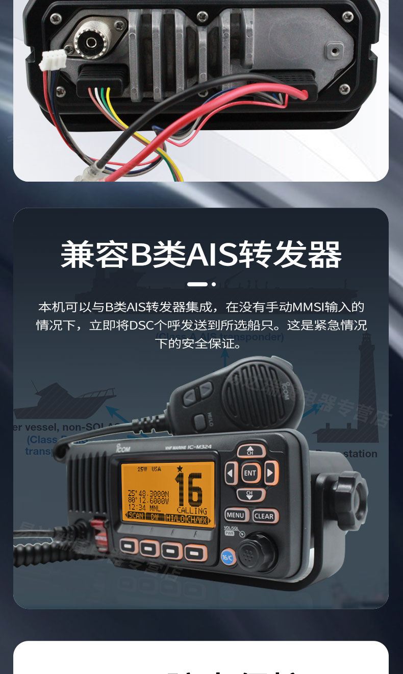 • 海事甚高頻電臺,內置通用海事頻點。DSC功能,在遇險是及時發出緊急求救信號。