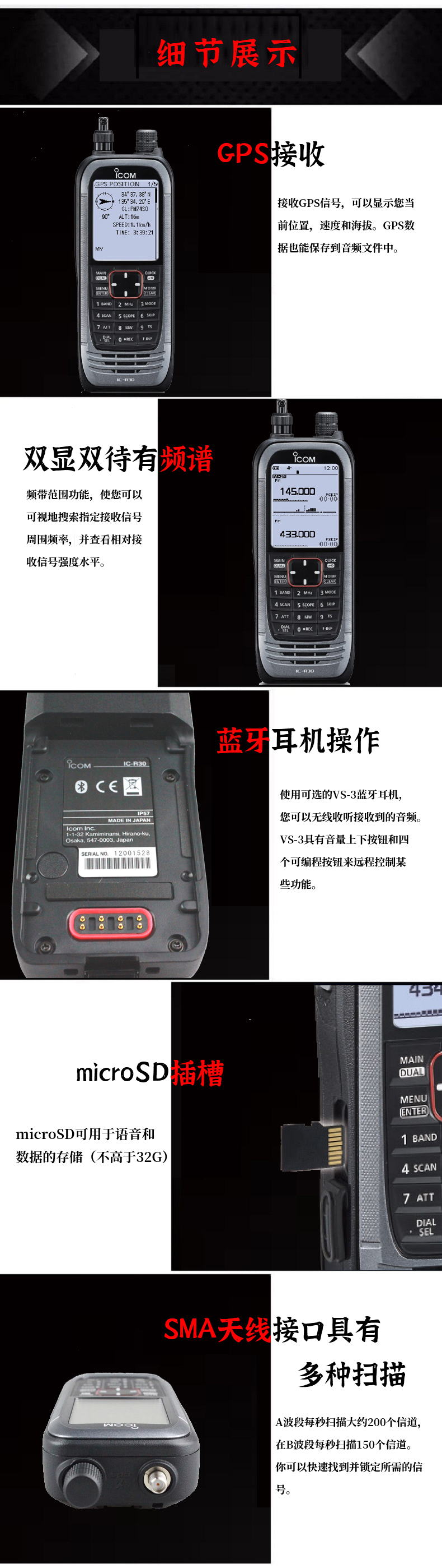 IC-R30雙顯雙待  雙重存儲  接收和解碼各種數字協議
