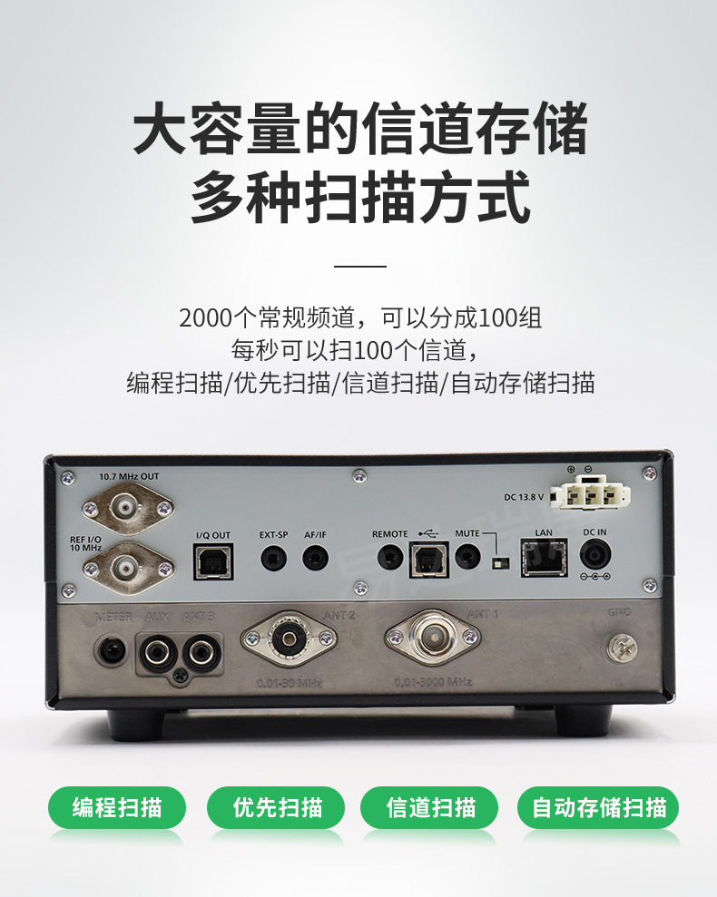 • 10KHz-3GHz寬頻段接收,4.3英寸彩色觸摸屏。