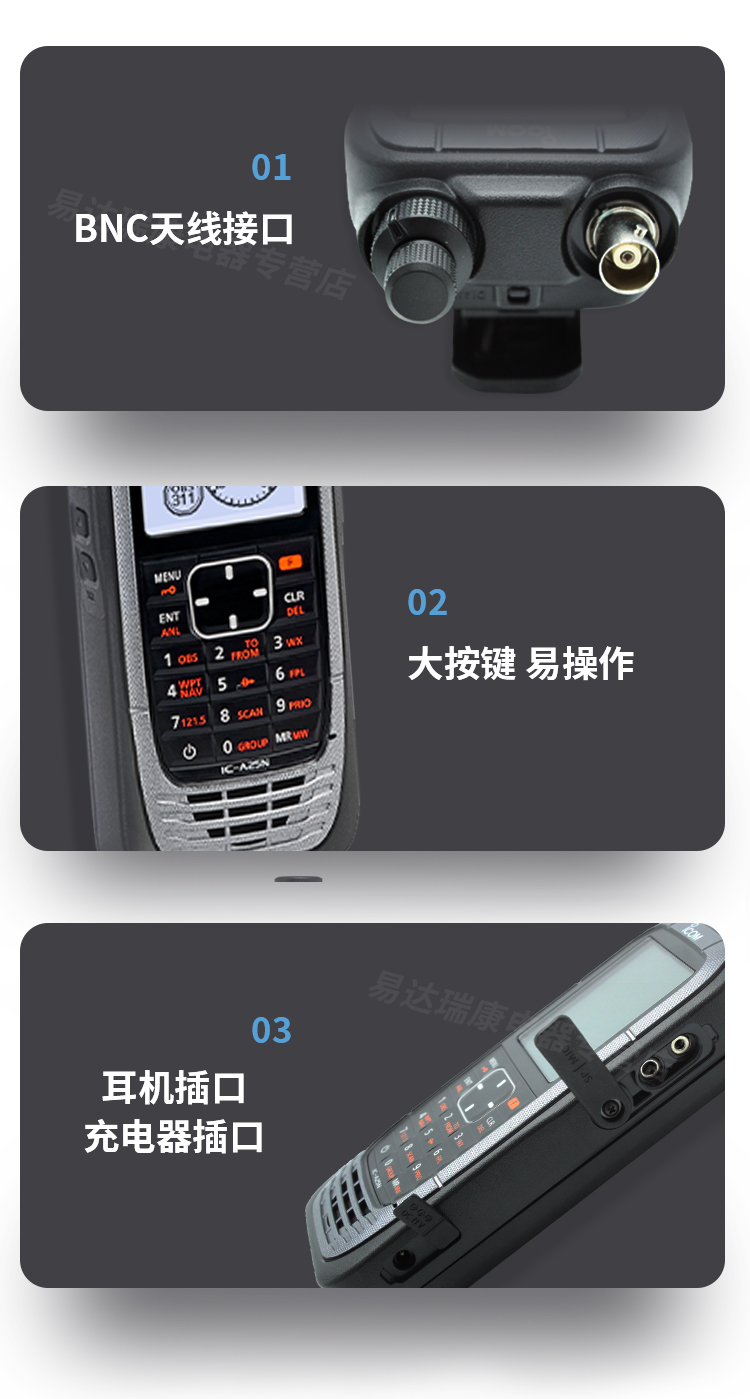 ICOM 艾可慕IC-A25航空對講機(jī)約2.3英寸大屏幕