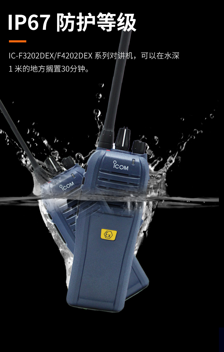 IC-F3202DEX/F4202DEX 系列對(duì)講機(jī),可以在水深1 米的地方擱置30分鐘。