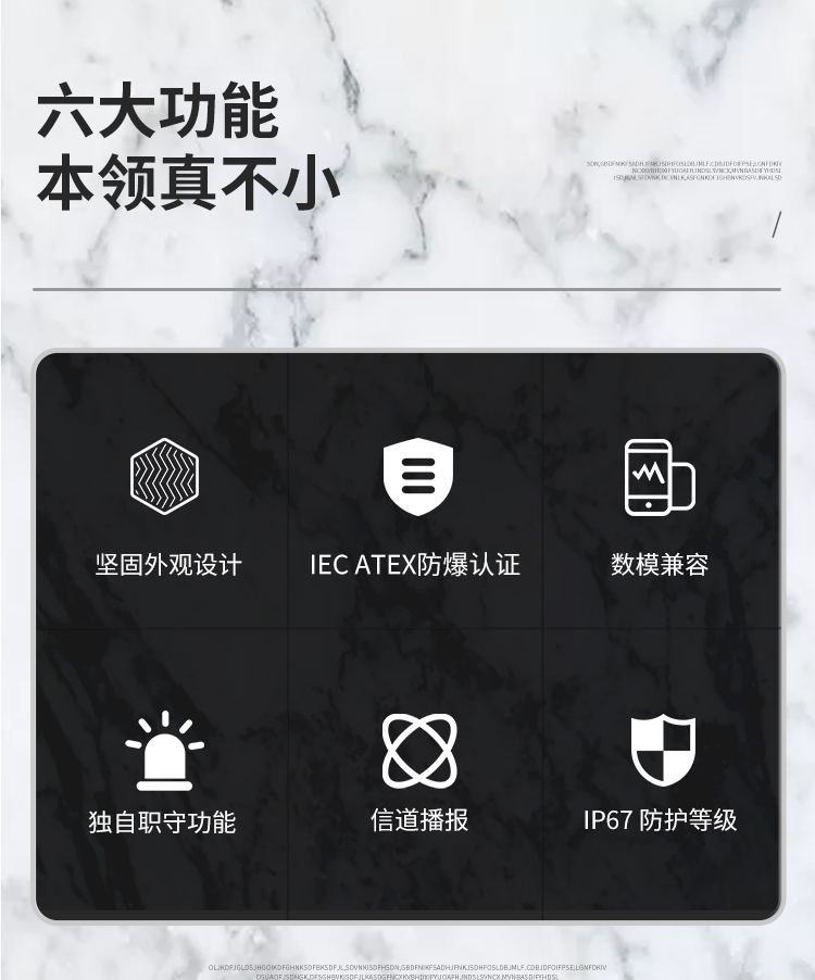• 氫氣數(shù)字防爆對(duì)講機(jī) IEC認(rèn)證 ATEX認(rèn)證 IP67防護(hù)等級(jí) IDAS數(shù)字操作 兼容模擬