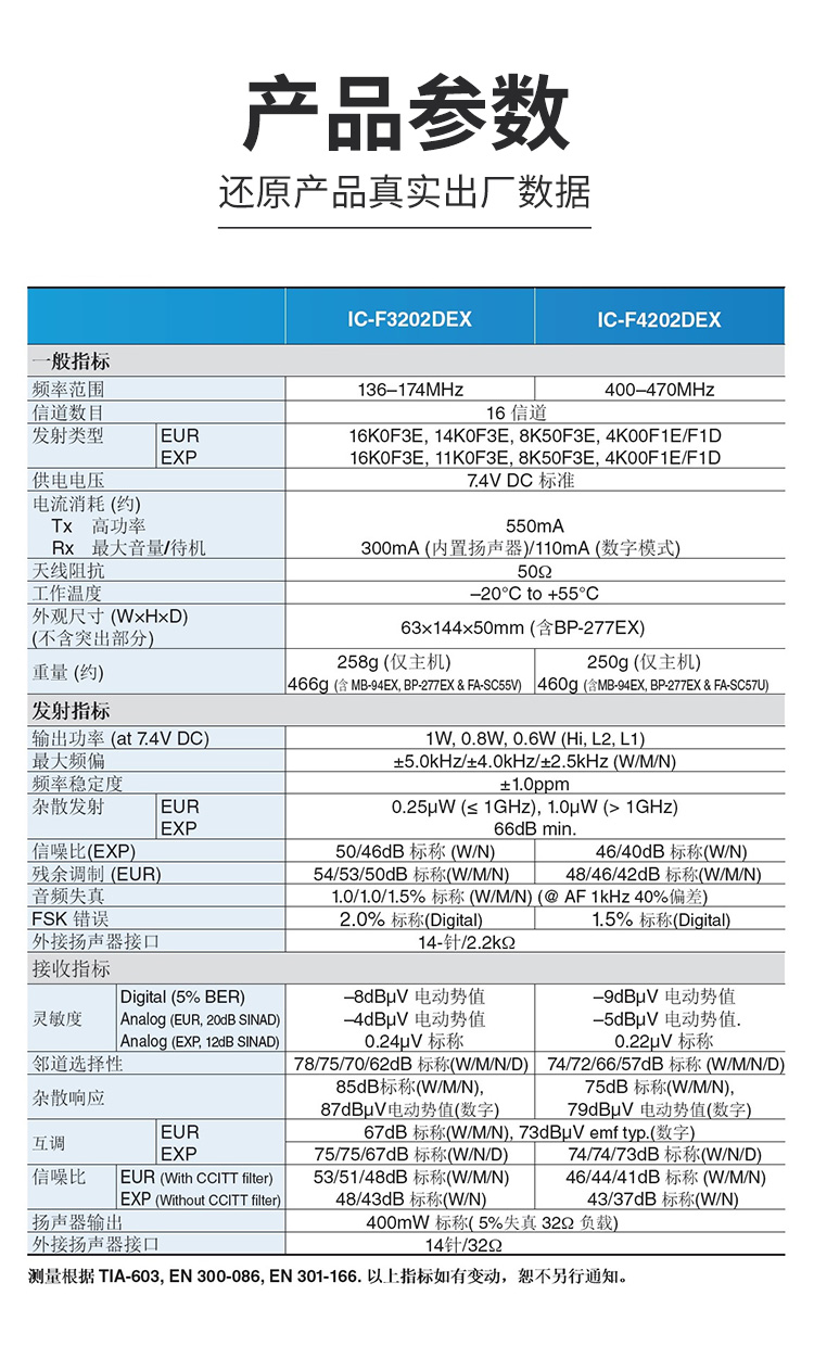 一般規(guī)格 VHF  IC-F3202DEX UHF  IC-F4202DEX