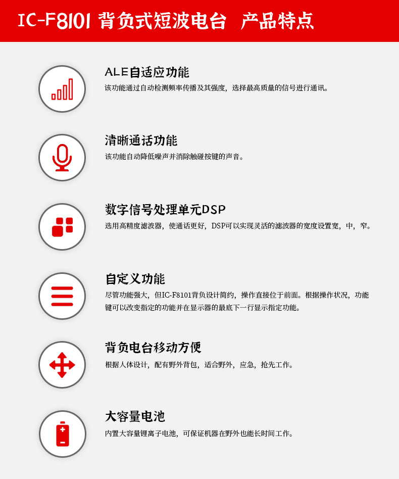 • 產品型號:IC-F8101背負式短波電臺