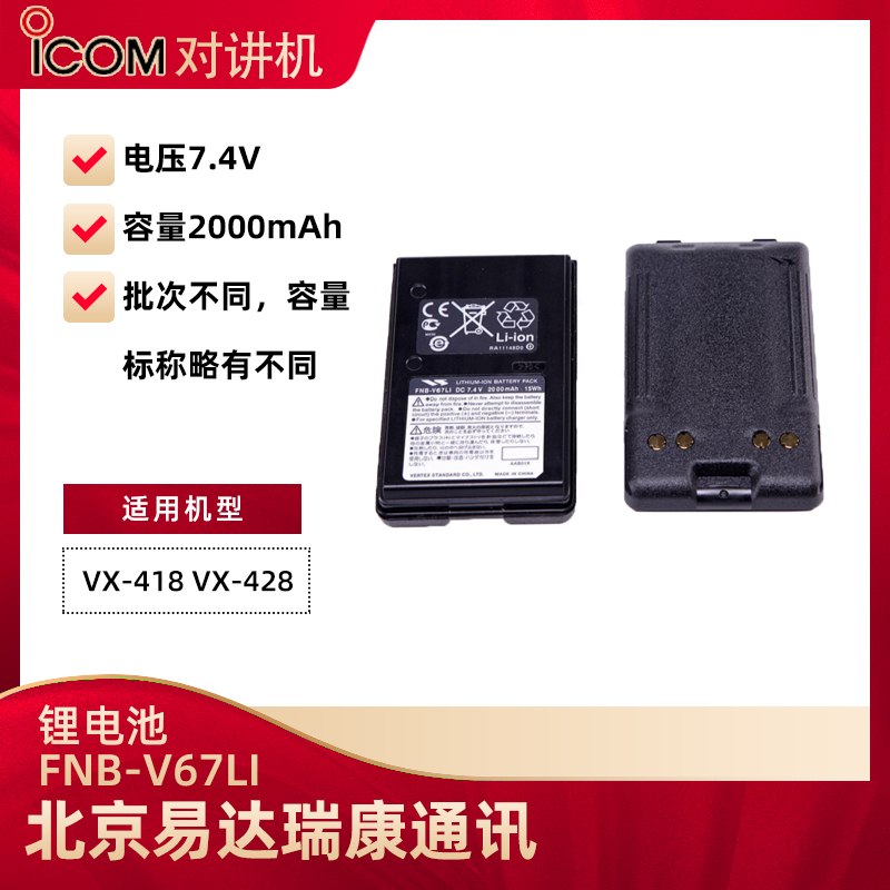 適用機型:威泰克斯VX-829普通對講機[注:VX-829防爆款不能配用此電池,防爆款適用電池型號:FNB-V92Li]