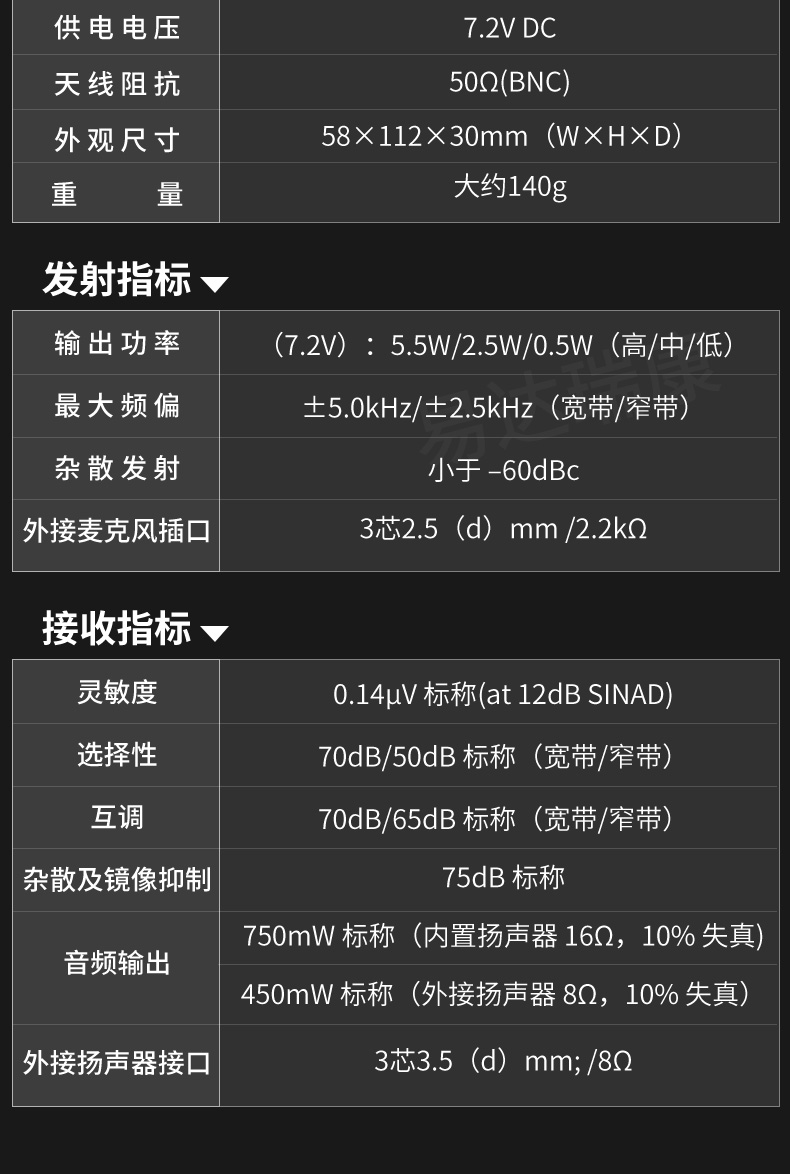 說明:以上條款均以摩托羅拉公司,威泰克斯,艾可慕,健伍公司的有關規定為準。