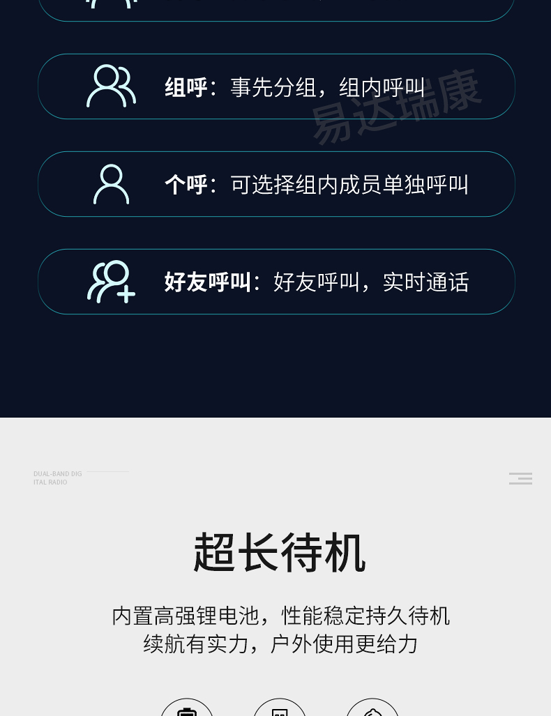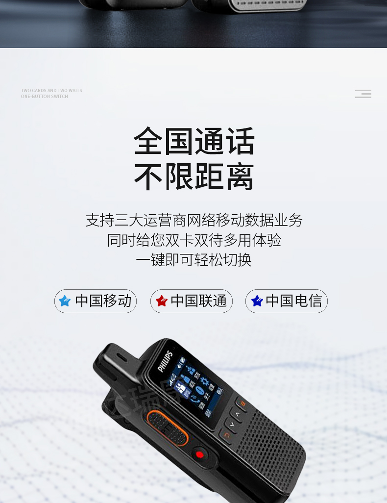 雙卡雙待 3大運營商使用 不限距離,全國對講 隨時錄音,云端存儲 大容量電池,強勁待機