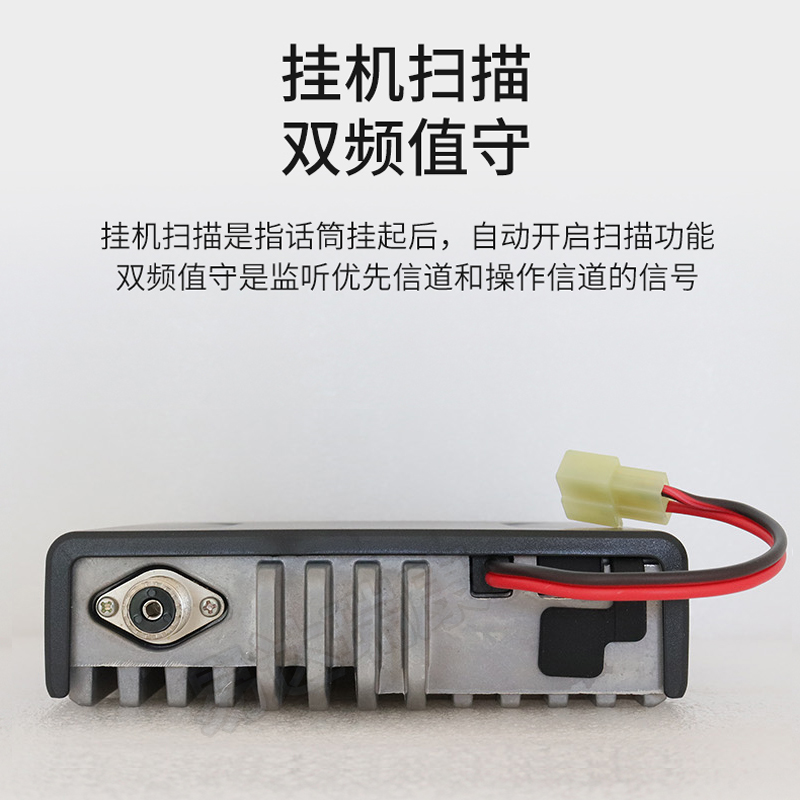 掛機掃描和雙重回望查看功能  雙重回望查看是在優先頻道和操作頻道之間查看,掛機掃描功能是指車臺手咪掛到掛鉤上面后,主機自動開啟掃描功能,掃描停止在優先頻道或者當先顯示的頻道,(需要預先編程)。