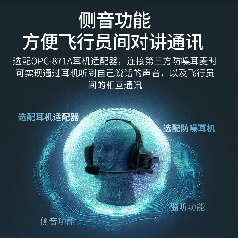 側音功能  當使用選配件OPC-871A耳機適配器連接一個第三方的耳機時,側音功能就可以通過耳機聽到自己說話的聲音,即使在使用麥克風時,自己的聲音也可以從耳機中監聽到。